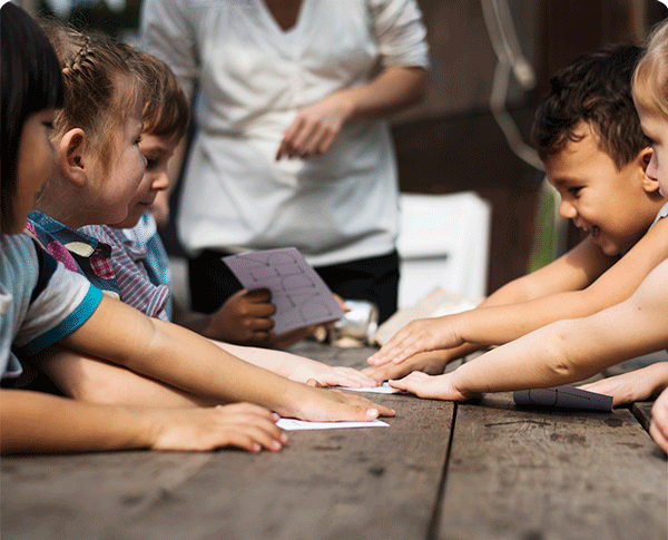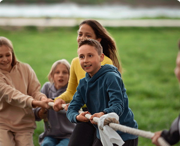 Juegos cooperativos por equipos y búsqueda de elementos naturales.